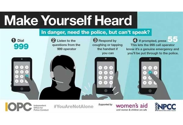 Are you aware of The Silent Solution? This is an emergency call system that allows people in danger to alert the police even if they are unable to speak. You can read more about the system here https://www.met.police.uk/contact/how-to-make-a-silent-999-call/