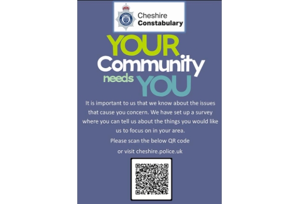 Your views are important to us www.cheshirepolice/residents voice or scan QR code below