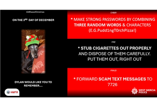 During December West Mercia Police Cyber Crime Unit and Hereford & Worcester Fire and Rescue Service would like to offer advice on how to stay safe over the festive period…..