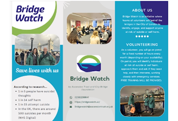 Every day, volunteers from Bridge Watch walk the bridges of London offering support, compassion, and a listening ear to those who may be struggling. With just a few hours a month, you can help save lives, offer hope, and be there for someone at their most vulnerable moment.