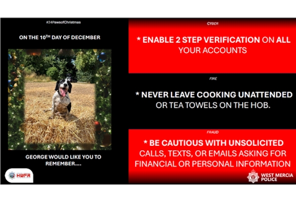 During December West Mercia Police Cyber Crime Unit and Hereford & Worcester Fire and Rescue Service would like to offer advice on how to stay safe over the festive period…..