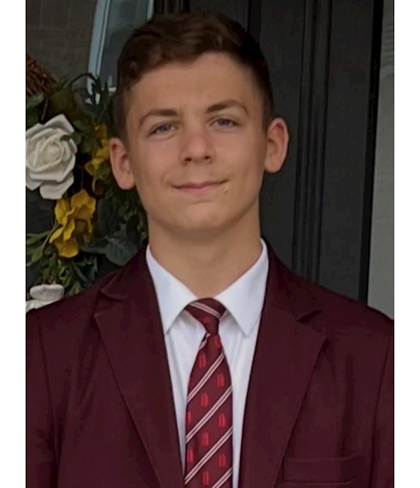 He is described as around 6ft tall and is believed to be wearing burgundy school uniform like the one pictured.