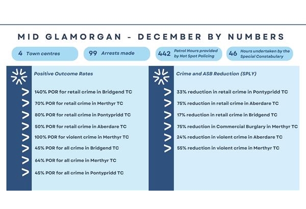 Below are the figures for December which shows a reduction in the below crimes and an increase in Positive Outcome Rates in the below figures.
