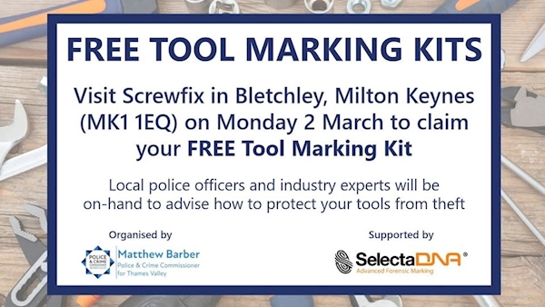 If you are unable to attend, please visit our dedicated webpage and complete the online form to request your free tool-marking kit: https://www.thamesvalley-pcc.gov.uk/tool-marking-kits/
