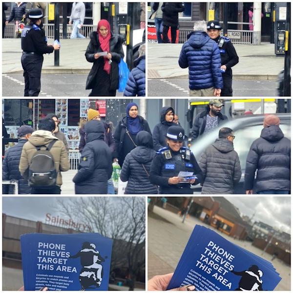 Officers visited Sainsbury's on Roden St, distributing crime prevention leaflets and advising public about phone thefts in the area. Raising awareness to maintain a safer neighbourhood.