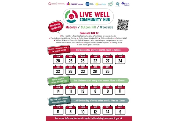 Dear Resident, The Cuckoo Oak and Ironbridge Safer Neighbourhood Team will be holding a mobile police surgery to coincide with the Live Well Community Hub this week. -Wednesday 11th March Take this opportunity to speak with your local policing team about any issues or concerns you may have in your community. Please also see below for a wide range of other services available at the event, no booking required. Kind Regards, Amy (PCSO Newbrook 40337).