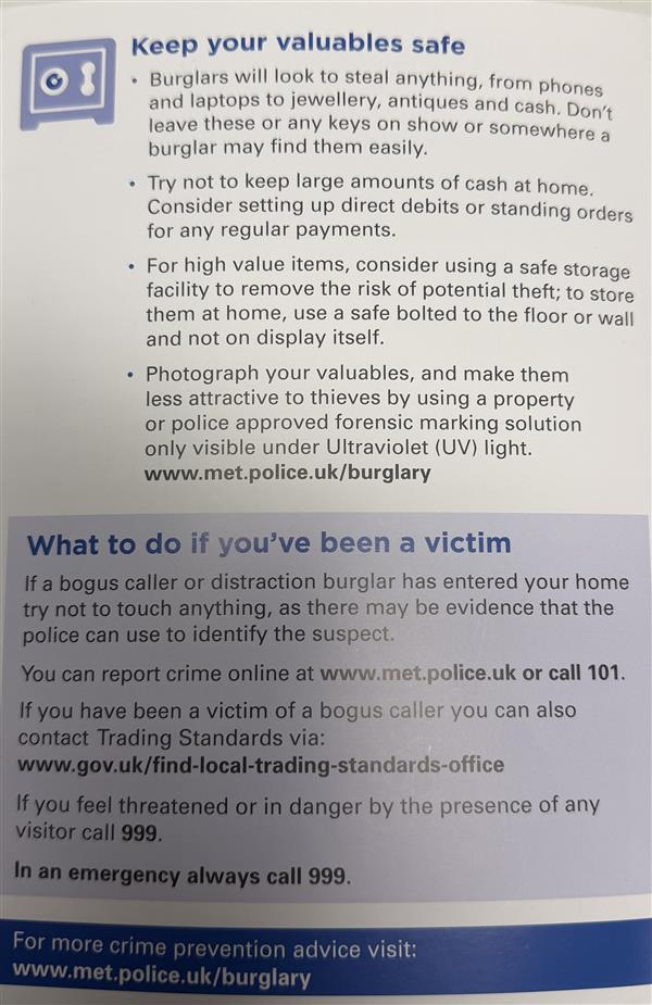• Ensure all doors and windows are locked before leaving your property • Use timer switches for lights to give the impression your home is occupied • Avoid advertising holidays or expensive gifts on social media • Ask a trusted neighbour or friend to keep an eye on your property and remove post or parcels • Keep valuables out of sight and consider using a safe for important items • Secure sheds, garages, and side gates • If you have a burglar alarm or CCTV, ensure it is working and set correctly