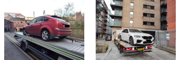 The first, a red Ford, was dumped on Annie Horniman Street and was blocking a fire exit and an unloading area for local businesses.