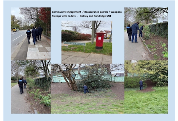 Today we have been working with our Bromley Police Cadets, they have volunteered their time to assist the team in reducing one of our ward priorities, violent crime, the cadets carried out weapon sweeps in open spaces on the ward to ensure these environments are a safe place to visit, as well as this we were raising awareness regarding ‘Met Engage’ We are committed to reducing violence in Bromley and in Bickley & Sundridge and by doing weapon sweeps regularly on the ward this helps us to achieve this - there were no suspicious items found today.