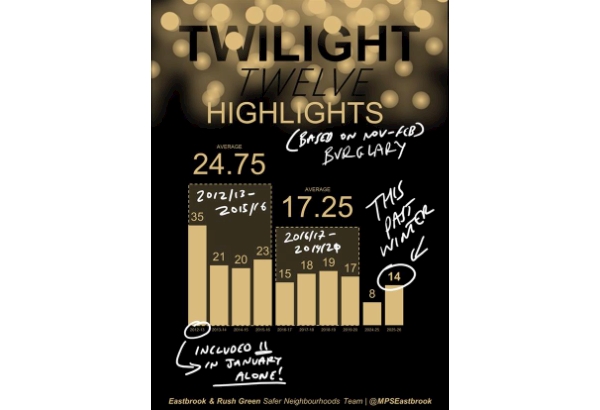 Winter burglary is down on Eastbrook and Rush Green.