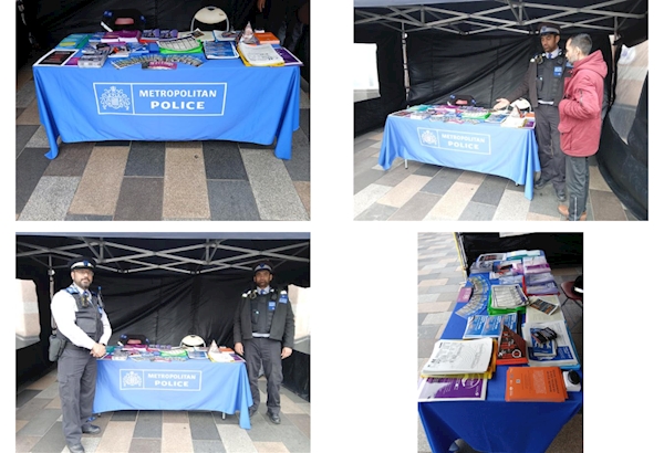 On 4th April 2026, Police Community Support Officers from the Ilford Town Safer Neighbourhood Team conducted a community engagement stall outside the Ilford Exchange, opposite Metro Bank.