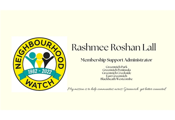 Hello Coenraad, My name is Rashmee and I support Neighbourhood Watch coordinators in Greenwich Park, Greenwich Peninsula, Greenwich Creekside, East Greenwich and Blackheath Westcombe. I have just approved your scheme and it is now part of NW family. Congratulations. This note to welcome you and the Commerell Street scheme and to introduce myself and ask if I can help with anything at all. The pleasures and the pains of being a NW coordinator is something I understand very well, as I’ve been coordinator of the Aldeburgh & Fearon Streets NW just up the road from you for nearly a decade. Two quick points you may want to consider for your scheme – no rush: Please hit reply and I'd be delighted to help you make your area a better place to live. The good news is we can bring Greenwich communities closer together. Look forward to hearing from you. Rashmee