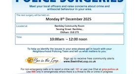 Dear Resident, Your local Safer Neighbourhood Team will be at Waitrose on Tuesday 9th Decembe...