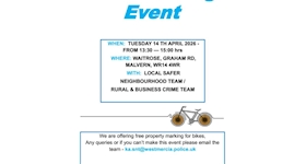 Crime Prevention/Bike marking Event : Sun 12 Apr 10:00