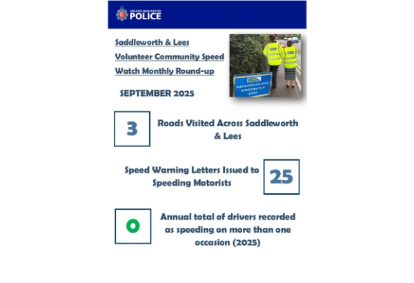 Saddleworth & Lees Community Speed Watch Monthly Round Up - September 2025 |