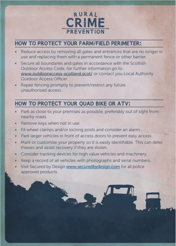 Stewartry Community Policing Team are continuing to conduct rural crime patrols in the area.
