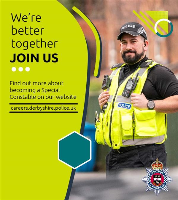 #SpecialConstabulary #Volunteer #Recruitment #WereBetterTogether #JoinUs #MakingDerbyshireSaferTogether | ||