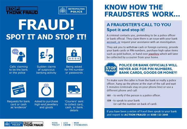 For more information and help and to report fraud, go to Action Fraud, the UK’s national fraud and cybercrime reporting centre. Lastly, if you think you’ve uncovered a scam, been targeted by a scam or fallen victim to fraudsters, please contact 101 or Action Fraud on 0300 123 2040 or online at Action Fraud.