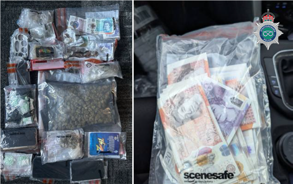 Two arrests after cocaine, cannabis and nearly £5k cash found |