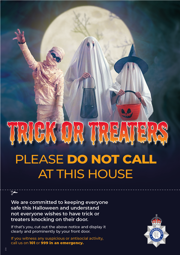 🏡 If you’d prefer not to receive trick-or-treaters, we recommend displaying a “No Trick-or-Treat” sign on your door or window. These posters are available free of charge from Brigg Police Station — feel free to pop in and collect one.
