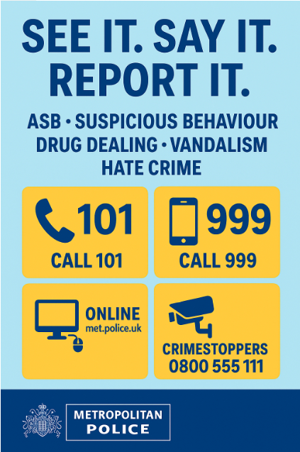If you ever experience this issue or have information regarding an incident, please report it using our online reporting tools at https://www.met.police.uk/, speak to an operator in our Force Communications Room via our online web chat or call the non-emergency number 101.