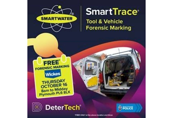 Tradespeople are invited to a free tool and vehicle marking event next week so they can have their belongings protected with SmartWater. The forensic marking kits will be offered at Wickes, Marsh Mills Retail Park in Plymouth, (PL6 8LX) between 8am and midday on Thursday 16th October. A limited number of kits are available and will be issued on a first come first served basis, completely free of charge. Local officers from the Plymouth North Neighbourhood police team will be at the event, along with representatives from the Devon & Cornwall Police Crime Prevention Dept and DeterTech, who are the company behind the SmartWater product. Crime Prevention Tactical Advisor Kevin Sinfield explained: “We are delighted to team up with Wickes and DeterTech to help tradespeople protect their livelihoods. “We know how devastating theft can be and we would urge tradespeople to come along and speak to us on 16th October to receive the important forensic marking and crime prevention advice. Each SmartWater kit has a unique identifiable code to the person it is registered with. The liquid is only visible under UV light. If tools are ever stolen and recovered, they can be reunited with their owners.” “On the day, tradespeople can get their important tools marked with a SmartWater kit. The liquid used is only visible under UV light and has a unique code that links the tools back to the person it’s registered with. That means if tools are ever stolen and recovered, they can be reunited with their rightful owners.” “We hope to arrange further forensic property marking events across Devon and Cornwall in the future.” Dave Lewis, Police Relationship Manager at DeterTech, added: “DeterTech appreciates the impact of tool theft particularly for tradespeople who rely on those tools to make a living. As such DeterTech are proud to be working nationally with Wickes using SmartWater forensic marking to deter crime and identify stolen property. The event at Wickes Plymouth supports Devon & Cornwall Police’s wider strategy using SmartWater to reduce crime, aligning with DeterTech’s purpose of giving greater peace of mind to people and communities every day.” For more information on local events please sign up to Devon & Cornwall Police Community Messaging Scheme and receive updates via email or text message You can also follow your local policing team via Facebook. To report a crime or report information about an incident please visit our website Home | Devon & Cornwall Police | ||