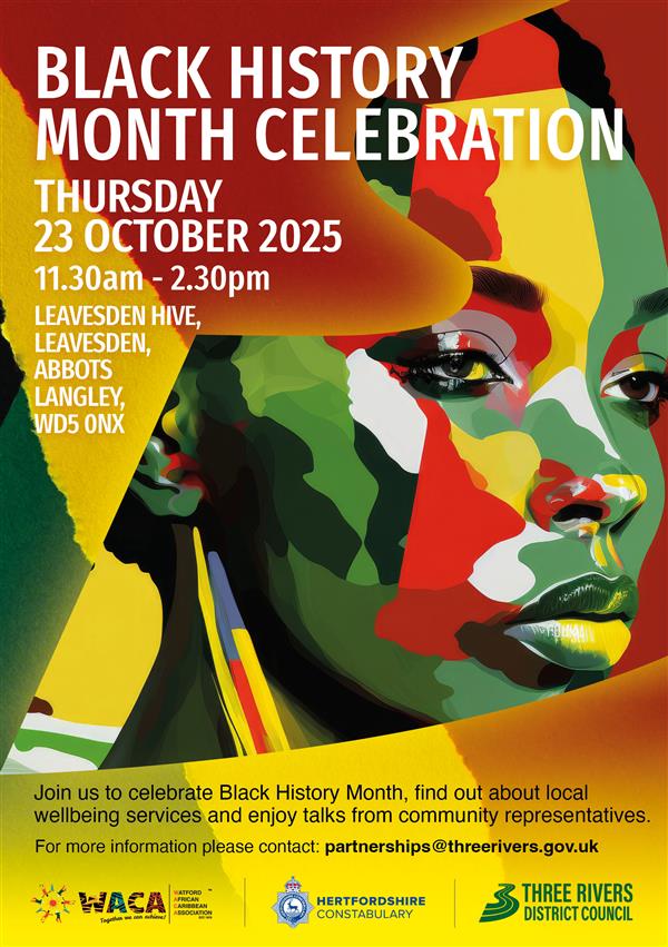 Dear Resident Three Rivers Neighbourhood Policing Team will be attending a Black History Month awareness session with partners from Three Rivers District Council and other local service providers as detailed below: