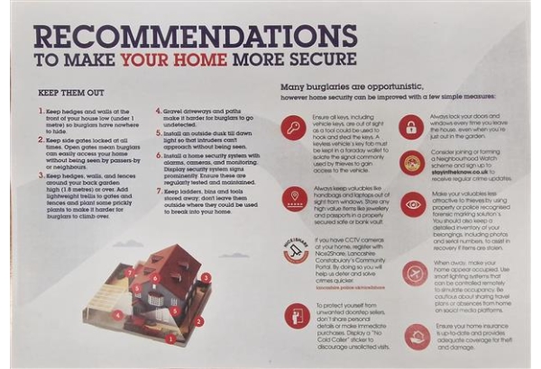 We would like to remind everyone to remain vigilant and ensure all their doors and windows are locked and that your locks are lock snap proof. there are a number of preventative measures you can take which I have attached