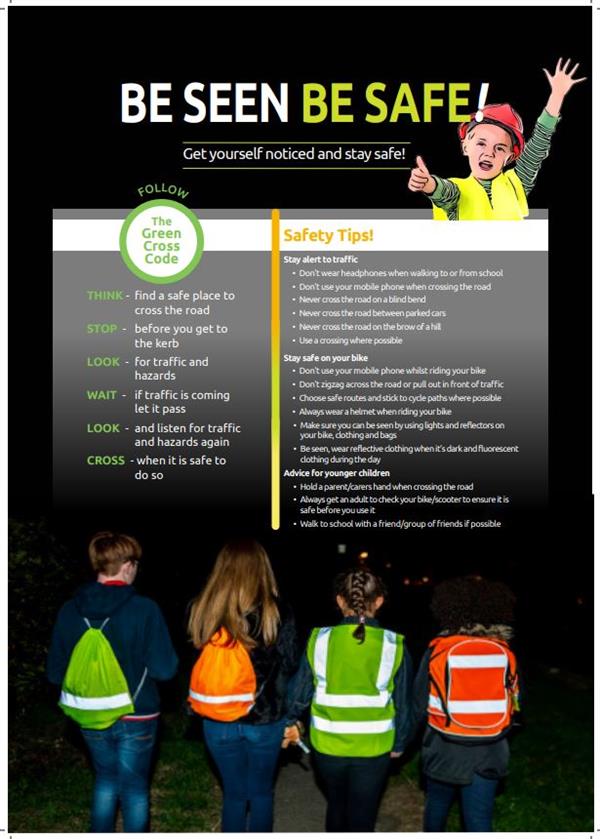 With the darker nights and the clocks going back in a few weeks time, please have a look at this safety advice and share it with any school or college aged children that you know.