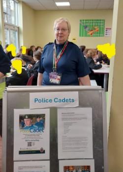 PCSO Buller of the Glossop Youth Engagement Team (YET) and Cadet Leader Brenda Smith completed a lunchtime drop-in session at New Mills Secondary School, Church Lane, New Mills today, Tuesday 14th October.