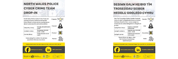 🚨 During the week North Wales Police Cybercrime Team will be at 3 area libraries across the county to discuss staying safe online and to answer any questions you have.