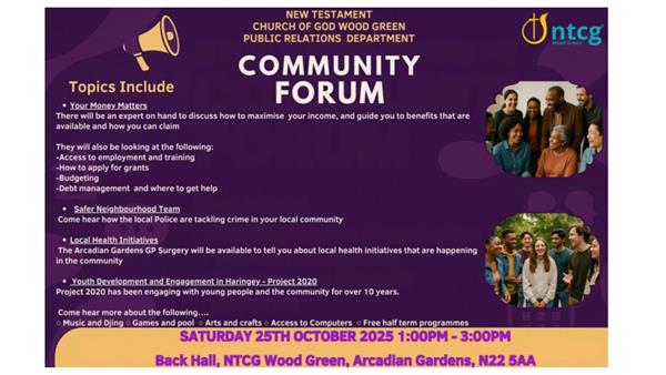 Community Forum at New Testament Church of God, Wood Green : Sat 25 Oct 13:00 |