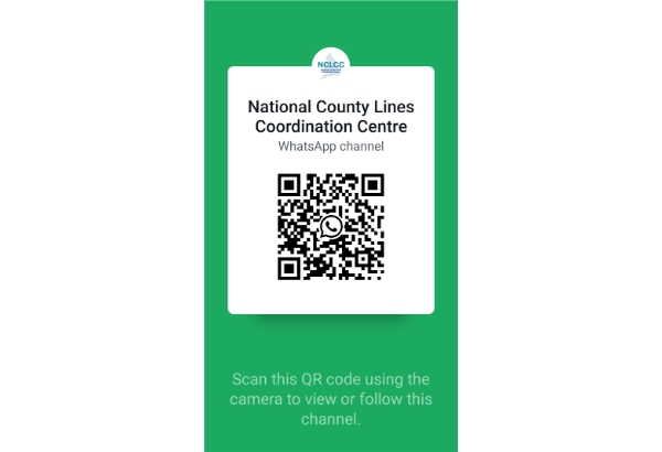 The National County Lines Coordination Centre (NCLCC) have created a forward facing one way WhatsApp Channel for communities and partners. A WhatsApp channel is a one-way broadcast tool for organizations and individuals to send updates to followers who are interested in specific topics. Unlike a regular chat, followers can't reply directly, but they can react to posts with emojis or vote in polls. It does not allow communication but offers an opportunity to tell the audience about everything County Lines related, such as training / awareness sessions, what action has taken place and public campaigns to name but a few.