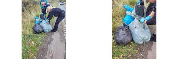 A report was made to police yesterday of dumped bags by the side road, on Hadley Road. Ridgeway SNT was assigned to attend today, and liaised with the informant who met with 3 officers and took them to the location, as the bags were out-of-sight in a ditch.