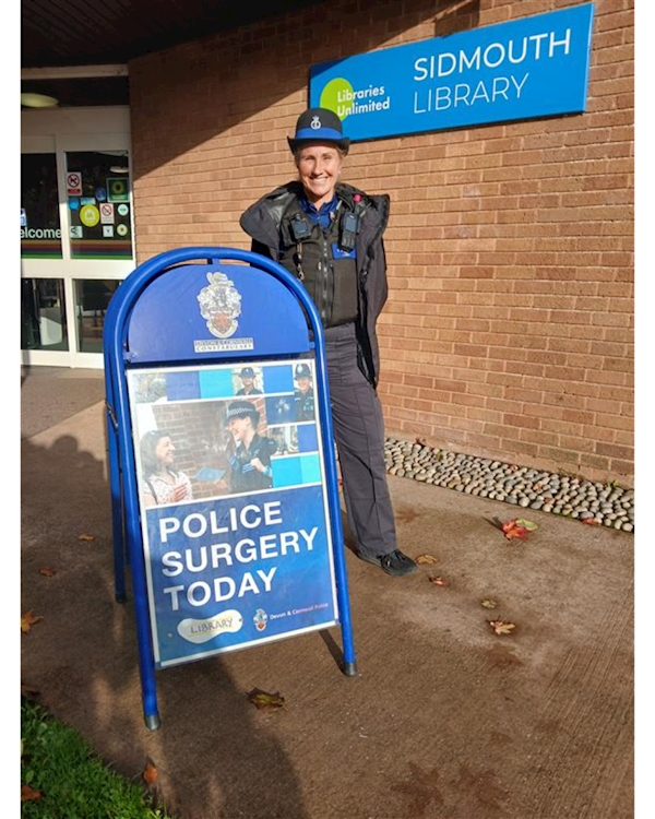 Your local PCSO, Jane, and a member from Trading Standards will be at Sidmouth Library on Friday 28th November from 10am until 12. Please take this opportunity to raise any concerns you may have and to find out what we are doing to tackle the issues that matter to you.