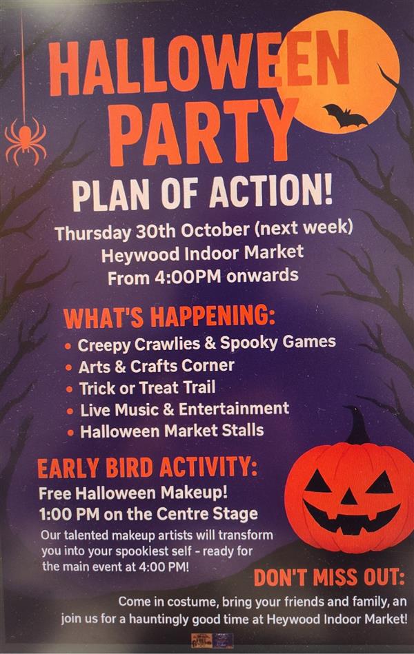 Heywood Indoor Market are having a Halloween party on Thursday, 30th October.