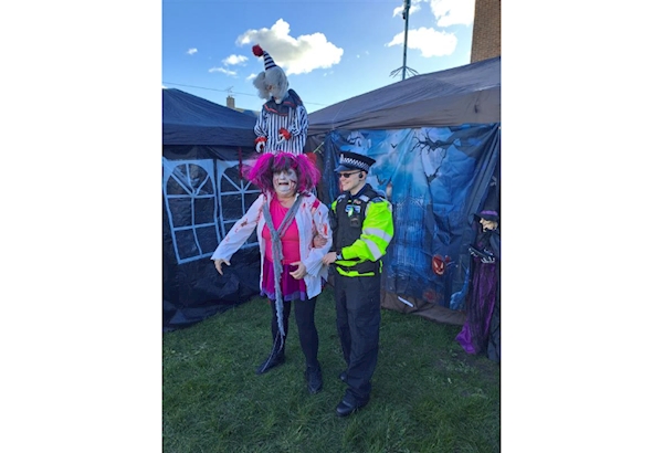 Our local Police Community Support Officers are on - site and the Halloween event is still up and running!