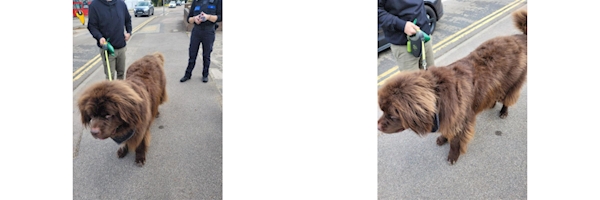 We had a little chat with the owner and stroked the friendly dog. We was astounded to hear this dog weighs 78kg! But is trying to get his weight down. We think you'll agree, as you will see from the attached photos, this dog has a unique look and is absolutely adorable. We will continue to patrol the area and hand out free cuddles to this dog.