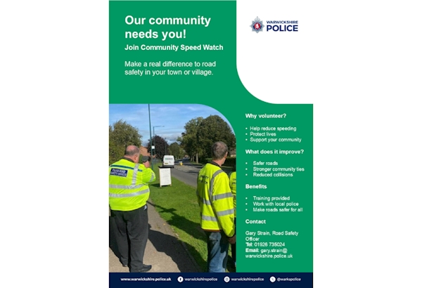 | Warwickshire Police are looking for Community Speed Watch volunteers in local communities | ||