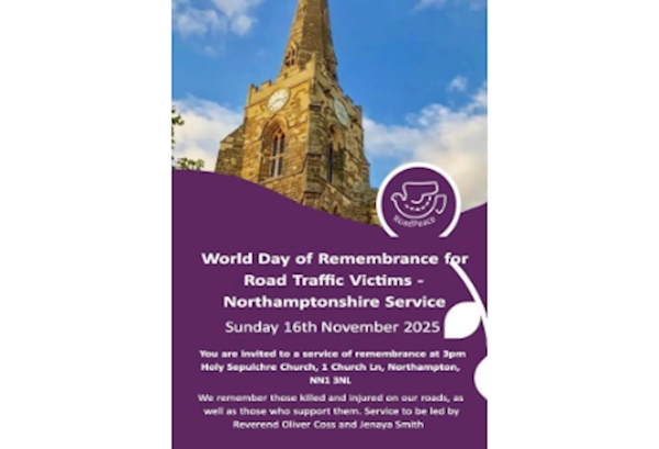 | Have you or someone you know experienced the devastation of a road traffic collision? Next month (November), a special memorial service to remember those who have been killed or seriously injured on our roads is being held in Northampton.