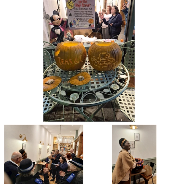 Hope everyone had a safe Halloween. We attended the Trick or Treat on the High Street and spoke with many witches, grim reapers, ghosts, skeletons, etc who had braved the weather to enjoy the trick or treating and find the pumpkins. We met the Mayor at Tea's and C's for the draw of the winning child.