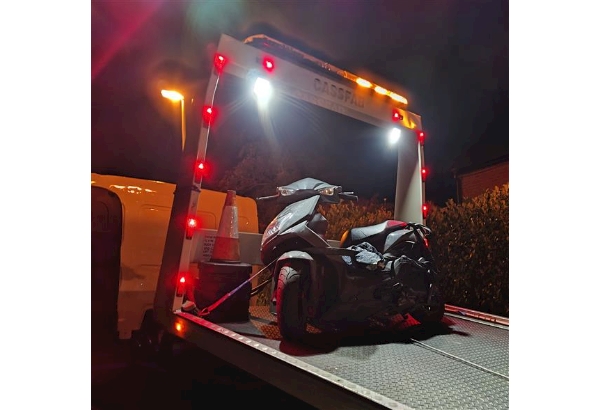 After receiving information from a member of the public, officers attended a location in Middleton and located a Moped, this had been involved in causing anti-social behaviour earlier in the day. The Moped was subsequently seized and taken away to be dealt with accordingly. If you see anything suspicious, please contact us via 101 or GMP Live chat or Crimestoppers and we will investigate, and where necessary, take appropriate action. Thank you