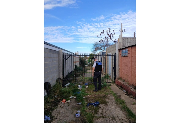 Clayhall PCSO on patrol following up issues reported at the last Ward Panel meeting. Fly tipping is behind locked private gated area. This should be reported to the council for further advice.