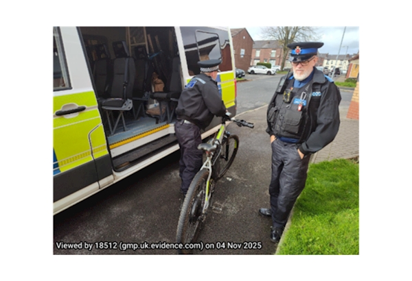 Over recent weeks, residents had raised concerns regarding the use of adapted push bikes and their involvement in Anti-Social activity in our local area. In response to this, your local team were proactive in the area, which resulted in the seizure of an adapted push bike, captured in the image below. The electric motor fitted to this bike meant it was capable of reaching speeds of 40mph, making it a danger to pedestrians, other road users and the rider themselves. Please share this message with friends and family as it is illegal to have a push bike, capable of being propelled over 15.5mph without pedalling. We don't want people to fall foul of these laws at Xmas time when gifting these bikes to others, as it will be expensive mistake should it then be seized by Police! Thanks, PC Chadwick.