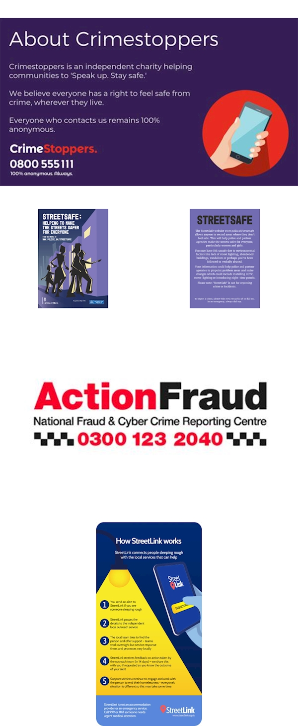Here are some platforms you can report Online or Report crime by calling 101 or in an emergency call 999.
