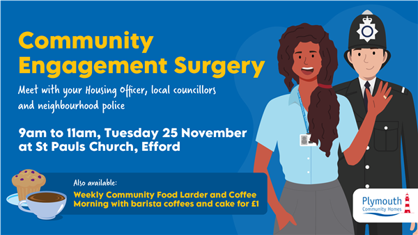 Your local Efford Neighbourhood Policing Team will be holding a Police Surgery on Tuesday 25th November at St Paulโs Church, Efford.