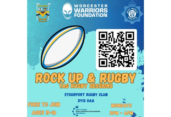 These sessions will be delivered by professional coaching staff from the Worcester Warriors Foundation and held at Stourport RFC, Walshes Meadow, Harold Davies Dr, Stourport-on-Severn DY13 0AA. To register please scan the QR code on the image. Alternatively please contact Stourport SNT by emailing stourport.snt@westmercia.police.uk | ||