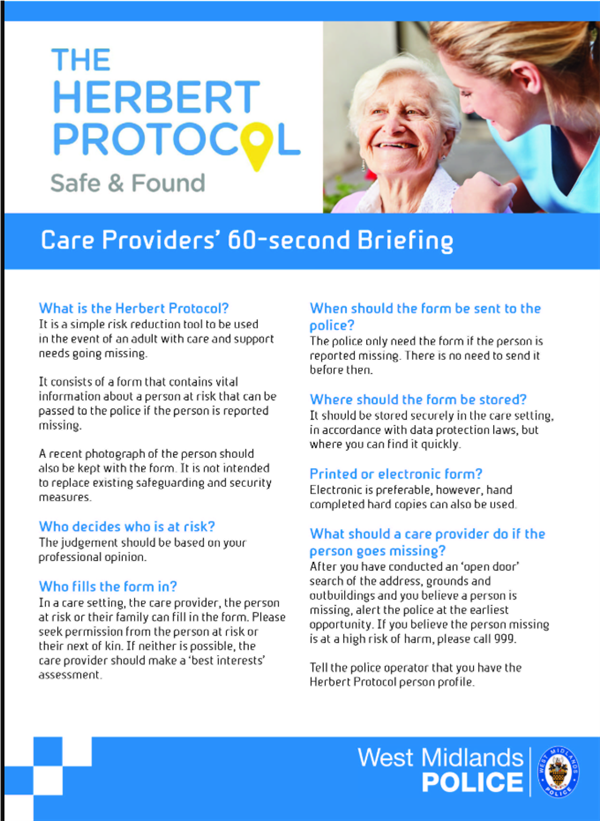 People with dementia at risk of going missing (Herbert Protocol) | West Midlands Police