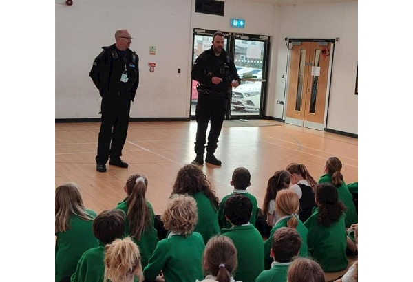 Pupils from the key stage 2 age group - that's 8 to 11 years old if you are of my generation - were visited at Greenfield Primary school today by local neighbourhood officers. Todays topic was related to the retail week of action, children talked about their understanding of what theft is, the difference between theft and borrowing and what happens if they are naughty! Children were engaged for at least 5 minutes, a record if I dare say so, but their interest was reinvigorated by staff participation - thank you again for being volunteered. A heavy topic for such young people, but it is sometimes good to reinforce the ideals of right and wrong and from the excellent interactions and response from these year groups I am sure these ideas were well received.