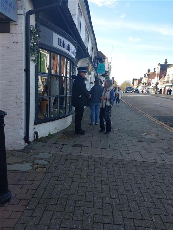 Summary of Activity Between 12–13 November 2025, I conducted foot patrols in Tenterden as part of Safer Business Week. The purpose was to engage with local businesses and members of the public to discuss concerns and promote community safety. Ashford Neighbourhood colleagues were simultaneously deployed in Ashford Town Centre and the Outlet. Incident Details